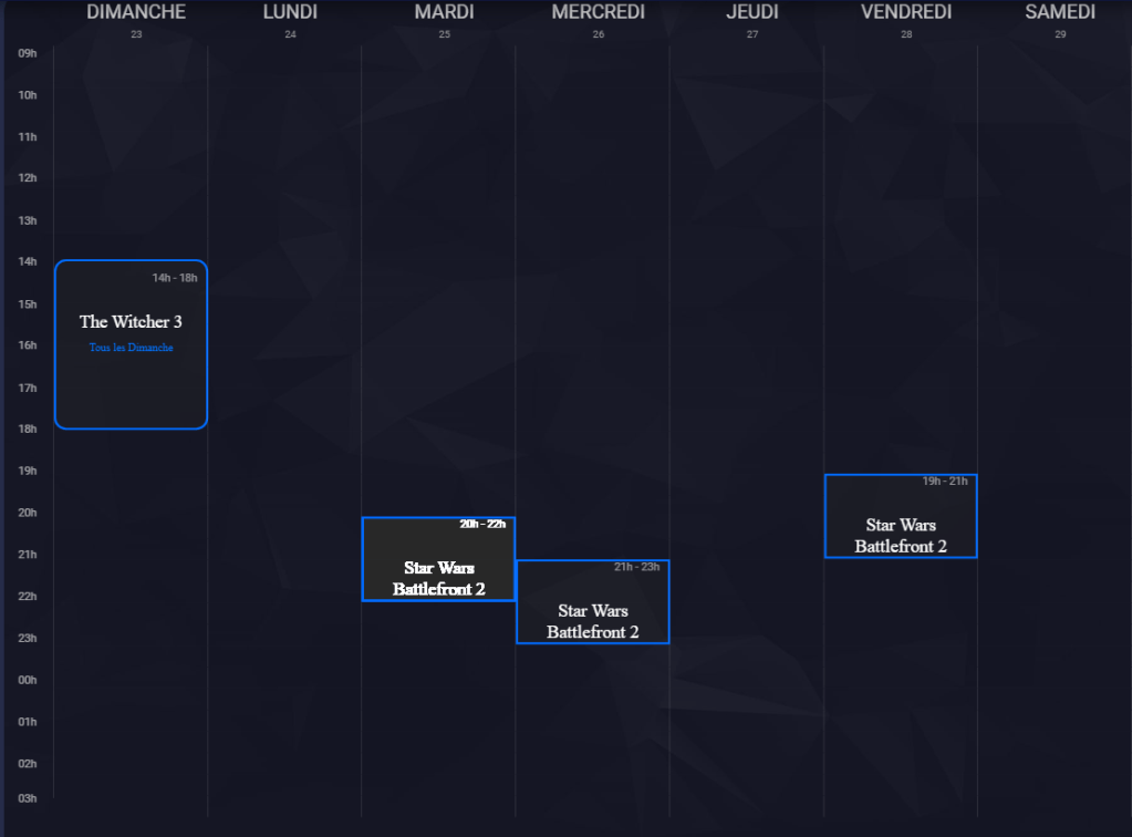 Planning de Stream